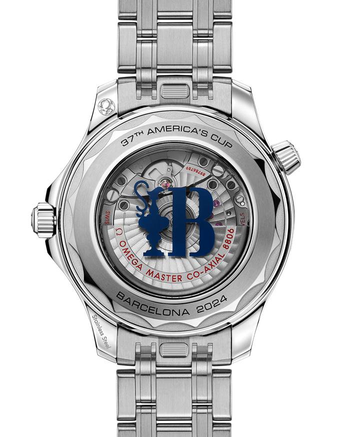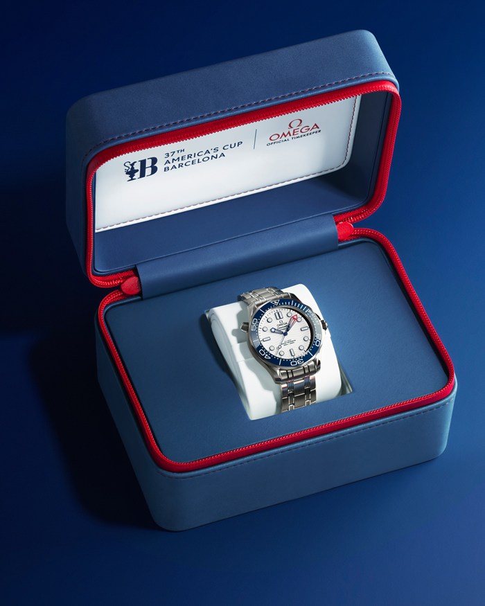 Zu Ehren von OMEGAs Rolle als offizieller Zeitnehmer des 37. America’s Cup hat OMEGA diese eindrucksvolle Seamaster Diver 300M mit einer Regatta-Skala und einem Gedenkboden entwickelt.