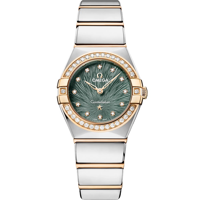 Dieses 25-mm-Modell wurde aus Edelstahl und 18 K Moonshine™-Gold gefertigt und ist mit einer strahlenden diamantbesetzten Lünette versehen. Dem Zifferblatt mit tannengrüner PVD-Beschichtung wurde anhand eines elektrochemischen Ätzverfahrens ein charakteristisches Supernova-Muster verliehen. Zu den weiteren Details zählen Zeiger und ein Stern aus 18 K Moonshine™-Gold und Diamantindizes in Fassungen aus 18 K Moonshine™-Gold.