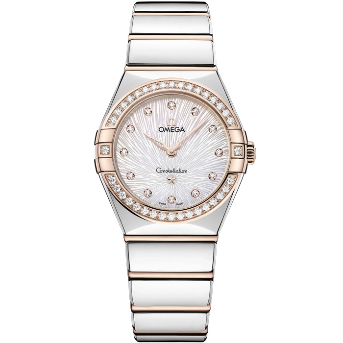 Dieses 28-mm-Modell wurde aus Edelstahl und 18 K Sedna™-Gold gefertigt und ist mit einer strahlenden diamantbesetzten Lünette versehen. Dem Zifferblatt aus schimmerndem Perlmutt wurde anhand einer Lasergravur ein charakteristisches Supernova-Muster verliehen. Zu den weiteren Details zählen Zeiger und ein Stern aus 18 K Sedna™-Gold und Diamantindizes in Fassungen aus 18 K Sedna™-Gold.