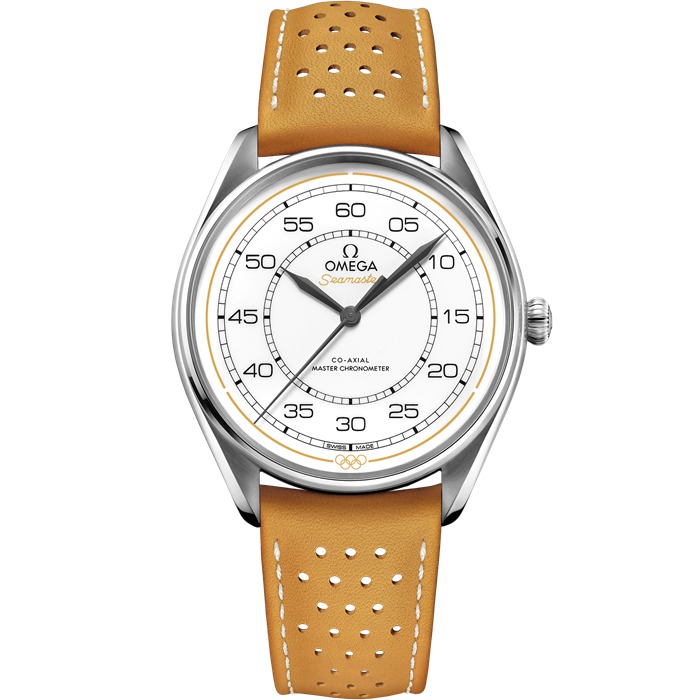 Auf dem Gehäuseboden befindet sich ein gelber eloxierter Aluminiumring, auf dem alle Austragungsorte und Termine der Olympischen Spiele mit Beteiligung von OMEGA verewigt wurden, von Los Angeles 1932 bis Los Angeles 2028.