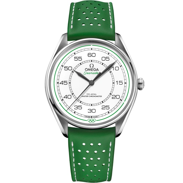 Auf dem Gehäuseboden befindet sich ein grüner eloxierter Aluminiumring, auf dem alle Austragungsorte und Termine der Olympischen Spiele mit Beteiligung von OMEGA verewigt wurden, von Los Angeles 1932 bis Los Angeles 2028.