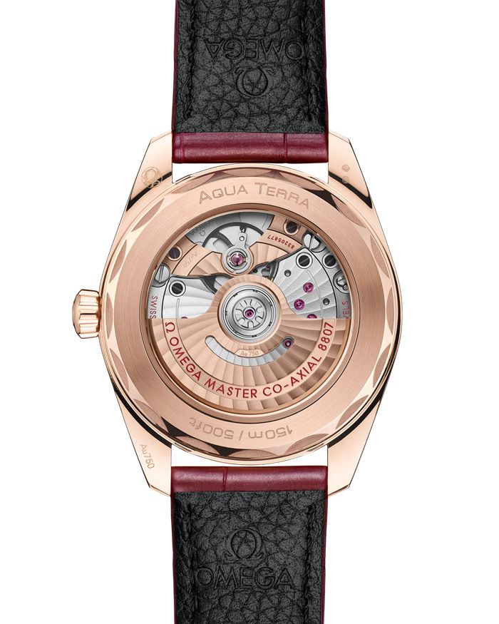 Die Seamaster Aqua Terra ist eine Hommage an OMEGAs großes maritimes Erbe. Dieses Modell ist eine von vier 38-mm-Uhren in saisonalen Farben und besitzt ein symmetrisches Gehäuse aus poliertem 18 K Sedna™-Gold, eine diamantbesetzte Lünette und einen Gehäuseboden mit Wellendesign.