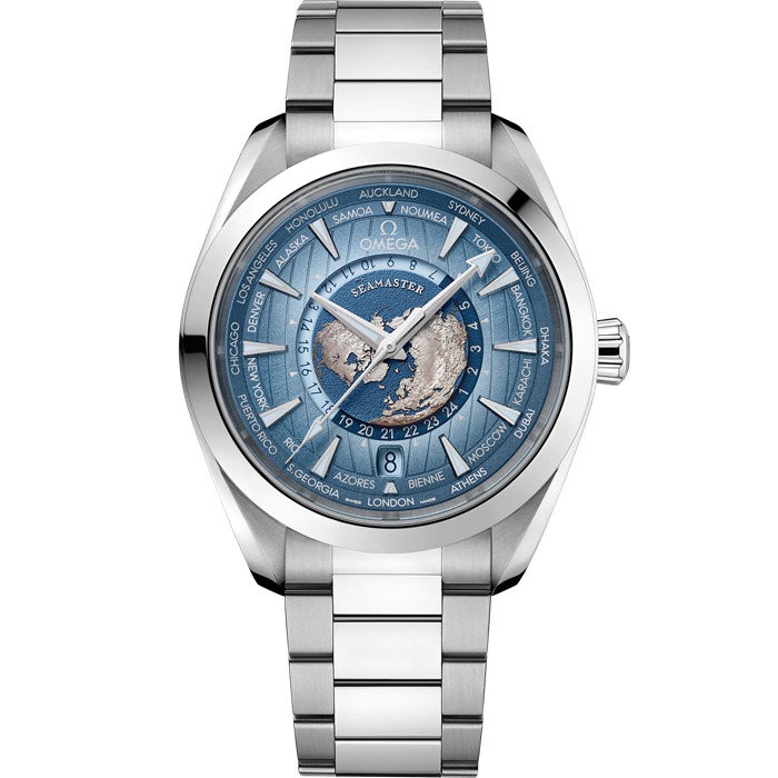 Um das Zifferblatt herum ist ein Ring mit silbern aufgedruckten weltweiten Städten angeordnet. Im Zentrum findet sich ein 24-Stunden-Ring aus Glas. Die hellblaue Farbe zeigt die Tagesstunden an, die dunkelblaue Farbe die Nachtstunden. Die Ansicht der Erde mit einem blauen Ozean und einem Relief der Kontinente wurde per Laser auf einem Plättchen aus Titan Grade 5 erstellt.
